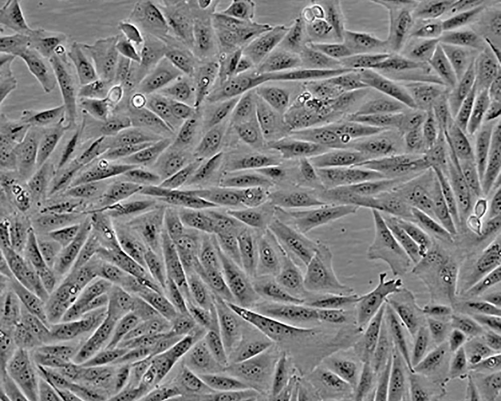 如果細胞密度達80%-90%,即可進行傳代培養。1. 棄去培養上清,用不含鈣、鎂離子的PBS潤洗細胞1-2次。2. 加2ml消化液(0.25%Trypsin-0.53mM EDTA)于培養瓶中,置于37℃培養箱中消化1-2分鐘,然后在顯微鏡下觀察細胞消化情況,若細胞大部分變圓并脫落,迅速拿回操作臺,輕敲幾下培養瓶后加少量培養基終止消化。3. 按6-8ml/瓶補加培養基,輕輕打勻后吸出,在1000RPM條件下離心4分鐘,棄去上清液,補加1-2mL培養液后吹勻。4. 將細胞懸液按1:2到1:5的比例分到新的含8ml培養基的新皿中或者瓶中 |