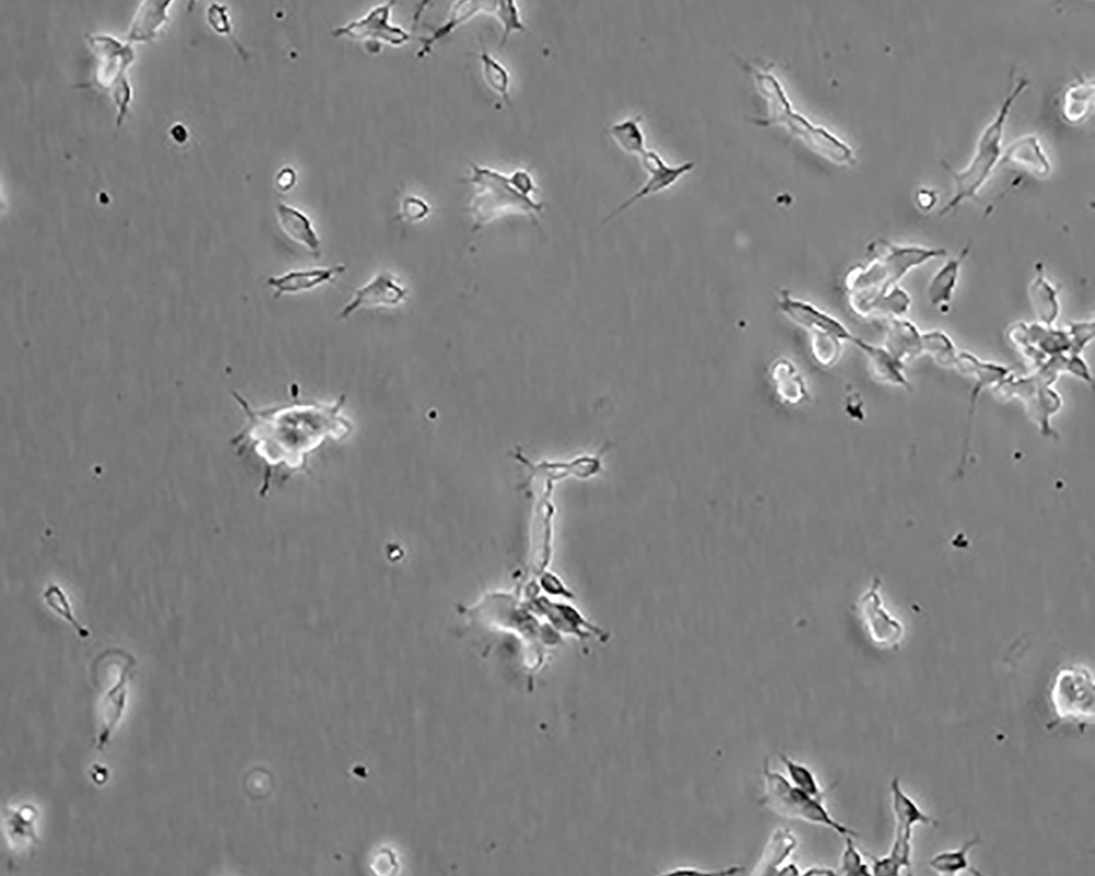 如果細胞密度達80%-90%,即可進行傳代培養。1. 棄去培養上清,用不含鈣、鎂離子的PBS潤洗細胞1-2次。2. 加2ml消化液(0.25%Trypsin-0.53mM EDTA)于培養瓶中,置于37℃培養箱中消化1-2分鐘,然后在顯微鏡下觀察細胞消化情況,若細胞大部分變圓并脫落,迅速拿回操作臺,輕敲幾下培養瓶后加少量培養基終止消化。3. 按6-8ml/瓶補加培養基,輕輕打勻后吸出,在1000RPM條件下離心4分鐘,棄去上清液,補加1-2mL培養液后吹勻。4. 將細胞懸液按1:2到1:5的比例分到新的含8ml培養基的新皿中或者瓶中 |