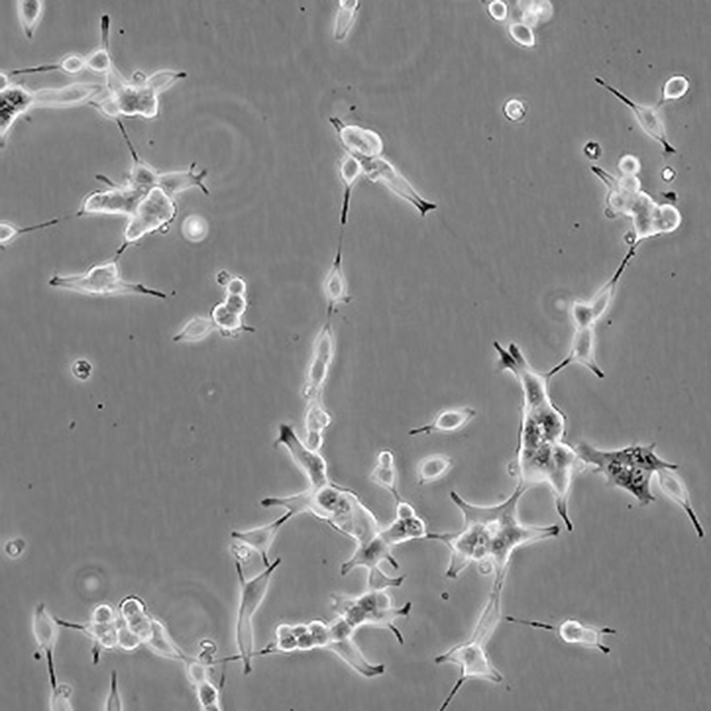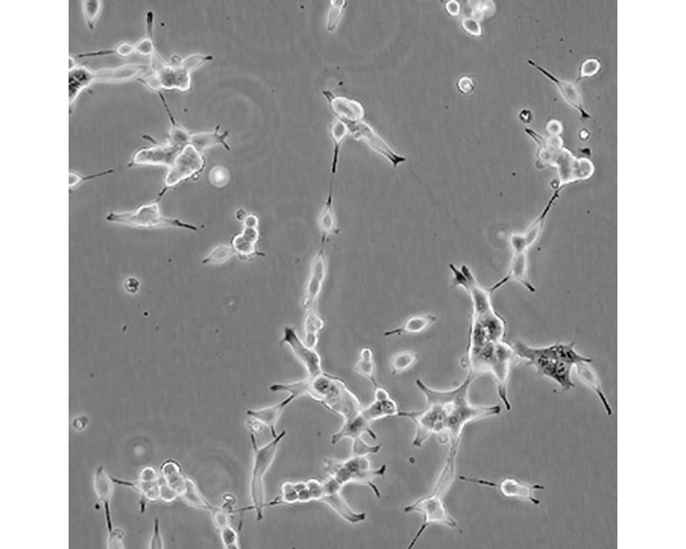 人前列腺癌細(xì)胞LNCaP克隆FGC是從一位50歲白人男性(血型B+)的左鎖骨淋巴結(jié)針刺活檢中分離,該患者經(jīng)確診為前列腺癌轉(zhuǎn)移。 這株細(xì)胞對5-α-二氫睪酮(生長調(diào)節(jié)子和酸性磷酸脂酶產(chǎn)物)有響應(yīng)。 這株細(xì)胞并不形成一致的單層,而是形成集落,在傳代時可以用滴管反復(fù)吹吸打碎。 它們僅僅輕輕地吸附在基底上,不形成匯合,很快使培養(yǎng)基變酸。 生長很慢。 傳代后48小時內(nèi)不應(yīng)擾動。 當(dāng)培養(yǎng)瓶封包后,多數(shù)細(xì)胞從培養(yǎng)瓶底分離,懸浮在培養(yǎng)基中。 收到后,在通常培養(yǎng)單層細(xì)胞的條件下培養(yǎng)24到48小時,以合細(xì)胞再貼壁。