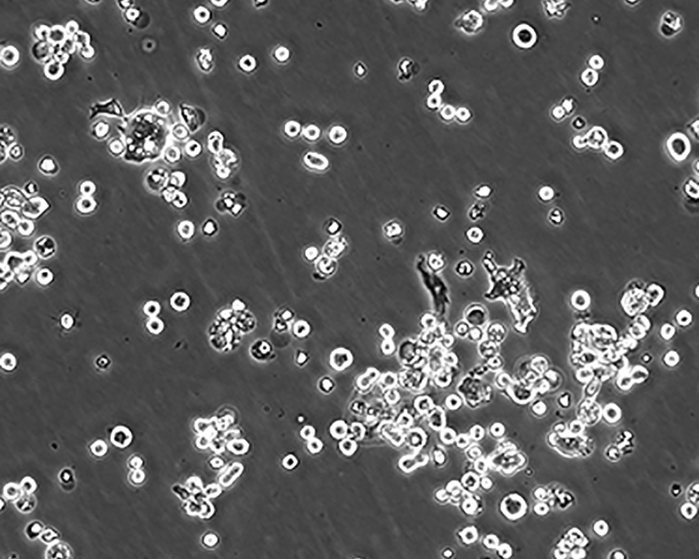 如果細胞密度達80%-90%,即可進行傳代培養。1. 棄去培養上清,用不含鈣、鎂離子的PBS潤洗細胞1-2次。2. 加2ml消化液(0.25%Trypsin-0.53mM EDTA)于培養瓶中,置于37℃培養箱中消化1-2分鐘,然后在顯微鏡下觀察細胞消化情況,若細胞大部分變圓并脫落,迅速拿回操作臺,輕敲幾下培養瓶后加少量培養基終止消化。3. 按6-8ml/瓶補加培養基,輕輕打勻后吸出,在1000RPM條件下離心4分鐘,棄去上清液,補加1-2mL培養液后吹勻。4. 將細胞懸液按1:2到1:5的比例分到新的含8ml培養基的新皿中或者瓶中。 |