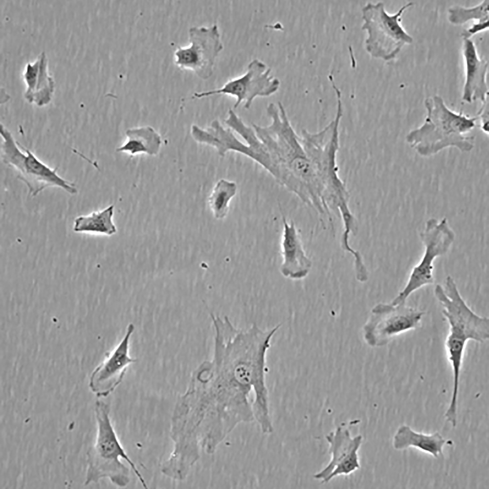 待細胞生長狀態(tài)良好時,可進行細胞凍存。下面T25瓶為例;? 1.細胞凍存時,棄去培養(yǎng)基后,PBS清洗瓶底1-2次后加入1ml胰酶,細胞變圓脫落后,加入2ml完全培養(yǎng)基終止消化,可使用血球計數(shù)板計數(shù)。 2.1000RPM離心5分鐘去掉上清。用血清重懸浮,加DMSO至最終濃度為10%。加入DMSO后迅速混勻,按每1ml的數(shù)量分配到凍存管中,注意凍存管做好標識。本公司按每個凍存管細胞數(shù)目大于1X106個細胞凍存。3.將凍存管置于程序降溫盒中,放入-80度冰箱,至少2個小時以后轉(zhuǎn)入液氮灌儲存。記錄凍存管位置以便下次拿取。 |
