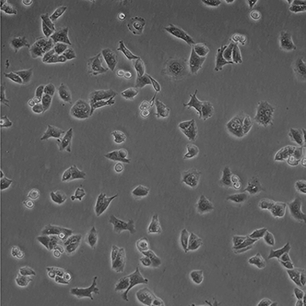 如果細胞密度達80%-90%,即可進行傳代培養。1. 棄去培養上清,用不含鈣、鎂離子的PBS潤洗細胞1-2次。2. 加2ml消化液(0.25%Trypsin-0.53mM EDTA)于培養瓶中,置于37℃培養箱中消化1-2分鐘,然后在顯微鏡下觀察細胞消化情況,若細胞大部分變圓并脫落,迅速拿回操作臺,輕敲幾下培養瓶后加少量培養基終止消化。3. 按6-8ml/瓶補加培養基,輕輕打勻后吸出,在1000RPM條件下離心4分鐘,棄去上清液,補加1-2mL培養液后吹勻。4. 將細胞懸液按1:2到1:5的比例分到新的含8ml培養基的新皿中或者瓶中。 |